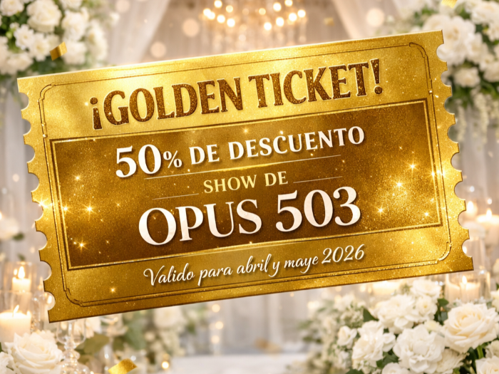 En el marco de su noveno aniversario, OPUS 503 ha decidido tirar la casa por la ventana. Con el objetivo de agradecer la fidelidad de su público, la agrupación lanza la promoción «Golden Ticket», regalando un 50% de descuento en su show para 9 parejas que celebren su boda durante los meses de abril y mayo de 2026.