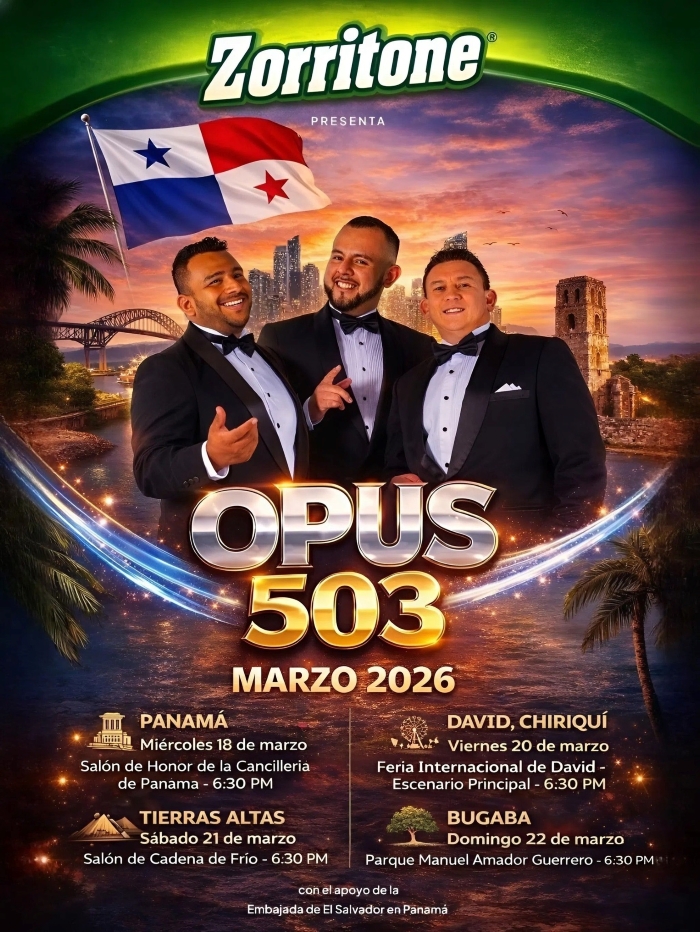 El reconocido trío pop lírico salvadoreño OPUS 503 llegará este mes de marzo a Panamá con una agenda artística de alto nivel que consolida su presencia internacional en Centroamérica. La agrupación desarrollará una intensa gira en la provincia de Chiriquí y en la ciudad de Panamá, llevando su propuesta vocal a escenarios emblemáticos del país canalero.